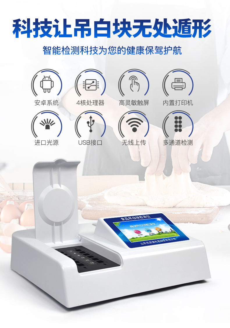 1、 檢測(cè)項(xiàng)目:用于快速檢測(cè)食品中吊白塊,儀器預(yù)留其他項(xiàng)目檢測(cè)程序和端口,根據(jù)日后需求可方便的自主增加檢測(cè)項(xiàng)目。日后可升級(jí)為檢測(cè),水產(chǎn)品,肉制品,面制品的綜合類(lèi)型儀器。