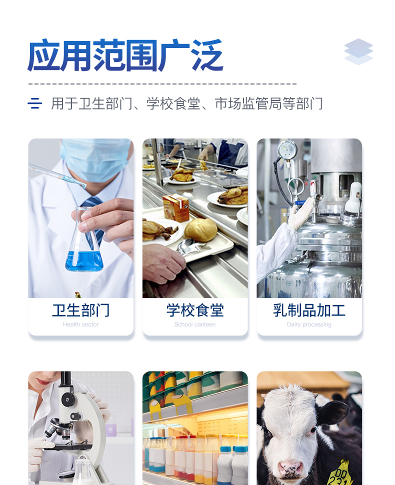 可快速檢測奶粉、牛奶及乳制品中的蛋白質(zhì),儀器預(yù)留其他項目檢測程序和端口,根據(jù)日后需求可方便的自主增加檢測項目。