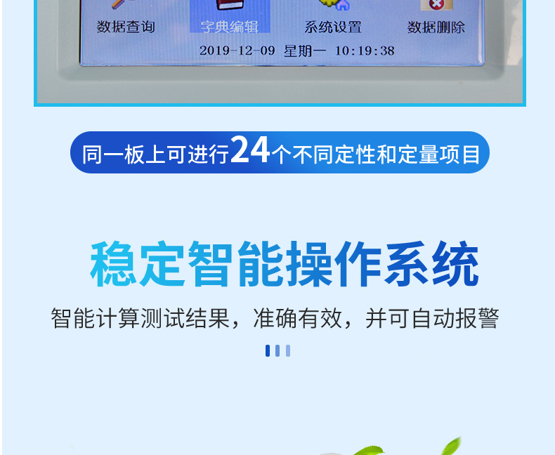 *在同一板上可進(jìn)行24個不同項目并可用顯示區(qū)分的測試,并可同一板檢測定性和定量項目;