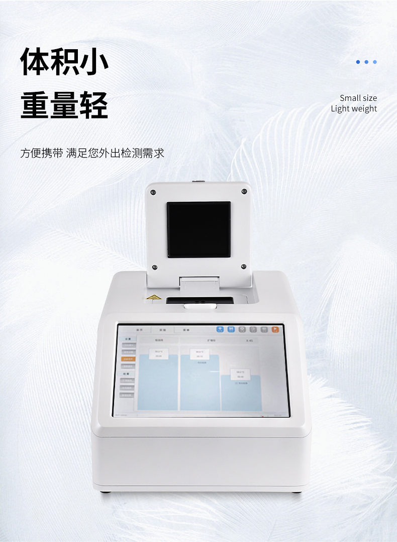 YP-P08型號(hào)非洲豬瘟快速檢測(cè)儀的原理:聚合酶鏈?zhǔn)椒磻?yīng)(polymerase chain reaction,PCR)是一種用于放大擴(kuò)增特定的DNA片段的分子生物學(xué)技術(shù),它可看作是生物體外的特殊DNA擴(kuò)增,由高溫變性、低溫退火及適溫延伸等幾步反應(yīng)組成一個(gè)溫度循環(huán)周期,使目的基因得以迅速擴(kuò)增,具有特異性強(qiáng)、靈敏度高、操作簡(jiǎn)便、省時(shí)等特點(diǎn),是基因擴(kuò)增技術(shù)的一次重大革新。PCR技術(shù)可將極微量的目標(biāo)DNA特異地?cái)U(kuò)增上百萬倍,從而大大提高對(duì)DNA分子的分析和檢測(cè)能力。