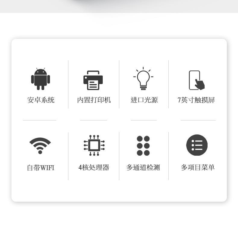 6、光源采用進口超高亮發(fā)光二極管,高精度、穩(wěn)定性強、光源可控、可以關(guān)掉不使用的光源,功耗更低。